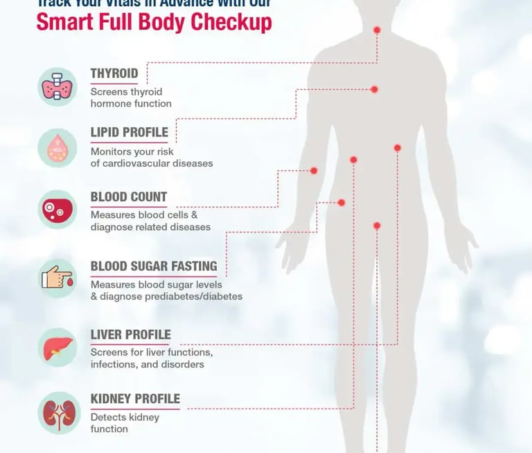 A full-body check-up evaluates major organs and systems. It helps detect early signs of illness, supporting prevention and long-term health management effectively.